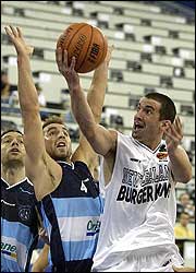 Mark Dickel, de Nueva Zelanda, intenta tirar ante la marca de "Pepe" Sánchez