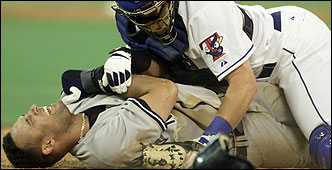El cinco veces miembro del Todos Estrellas, se lesionó en una colisión con el receptor de Toronto Ken Huckaby el 31 de marzo, en el primer partido de la temporada.
