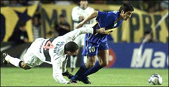 Boca dio la impresión de que empezaba a solucionar el problema con el gol del juvenil Carlos Tévez, a los 18 minutos del primer tiempo, pero Olimpia se aferró a su plan de "guerra de guerrilla" (espera paciente y ataque sorpresivo) y logró un valiosísimo empate a los 22 del segundo período, cuando Cristian Traverso batió involuntariamente a Roberto Abbondancieri.