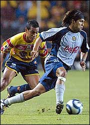 Con dos goles de Navia, las Aguilas ganaron la primera batalla de la guerra azteca en la Copa Libertadores