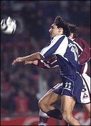 Otra alternativa que tuvo en cuenta Independiente fue la de los tiros libres, pero el arquero uruguayo Claudio Flores se destacó al rechazar un envío violento de Juan José Serrizuela, el lateral-volante debutante.