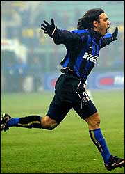 Recoba festeja el gol que le da la victoria y la punta a su equipo