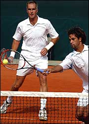 James Blake y Todd Martin se impusieron en cinco sets, por 2-6, 7-6(2), 2-6, 6-4, 6-4 contra Michael Llodra y Fabrice Santoro, para reducir a 2-1 la ventaja de Francia, el defensor del título
