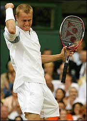 El australiano, primer favorito, alcanzó por primera vez la final del torneo de Wimbledon al vencer al británico Tim Henman