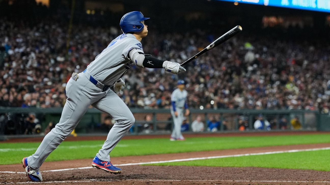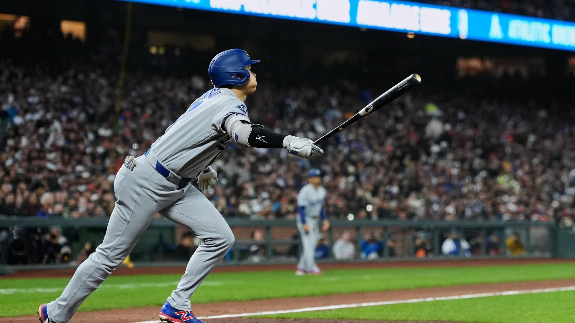 Shohei Ohtani pegó infield hit para llegar a 53 juegos seguidos llegando a base, e igualar a Shawn Green con la segunda mejor racha en la historia de Dodgers, que perdió ante San Francisco.