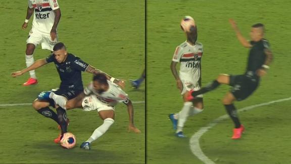 Jobson, del Santos, vio la roja ante San Pablo por dos durísimas patadas que dejaron en el piso al ex Barcelona.