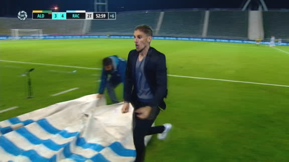 El DT de Racing salió corriendo mientras inflaban la manga, pero nada lo detuvo.