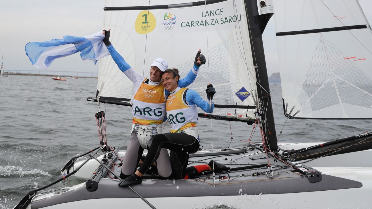 El binomio argentino tomó el liderazgo de la disciplina de vela y el martes buscarán una nueva medalla de oro en los JJOO.