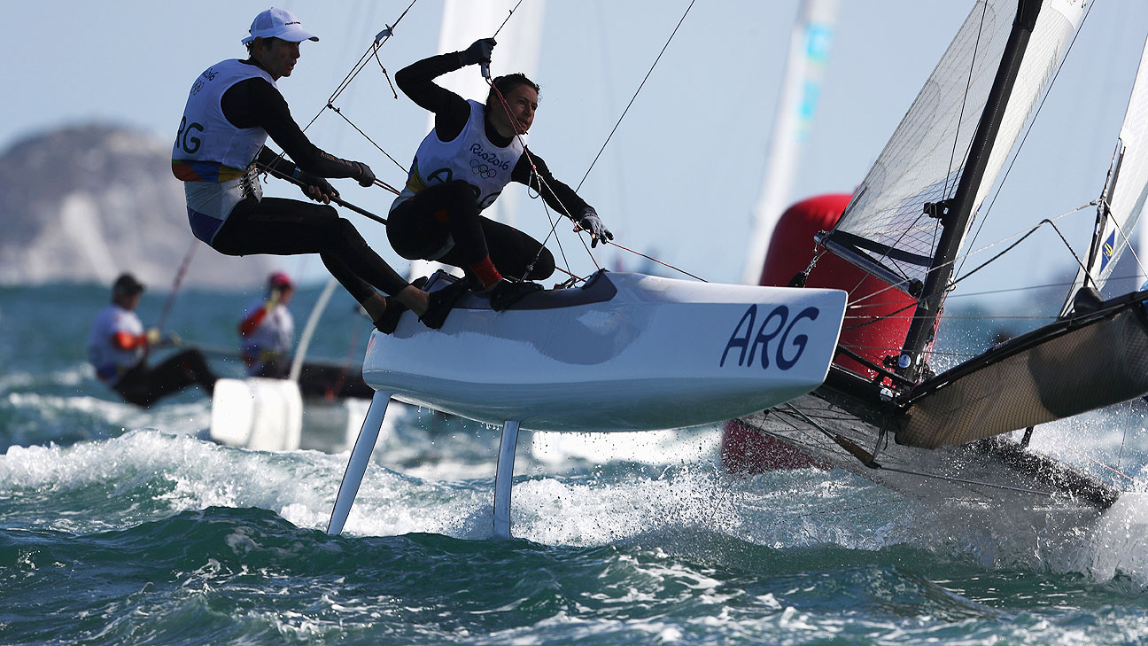 Los hijos del medallista de oro en Nacra, séptimos en la general, competirán en la clase 49er. masculina por una presea.